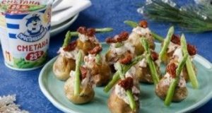 Читать далее »Канапе из печеного картофеля и спаржи с кремом из сметаны