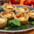Разогрейте духовку до 200 °С. Застелите противень бумагой для выпечки. Подошедшее тесто и начинку разделите на 10 равных частей.